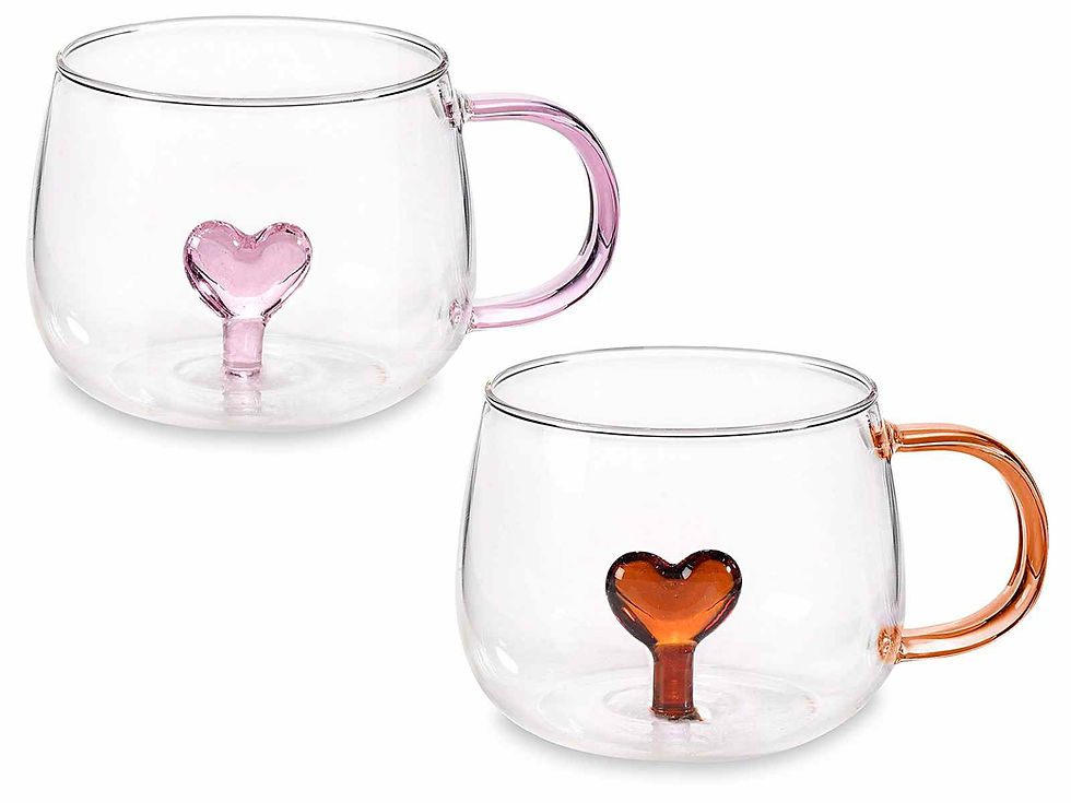 300ml glass mug with 3D heart inside and coloured handle